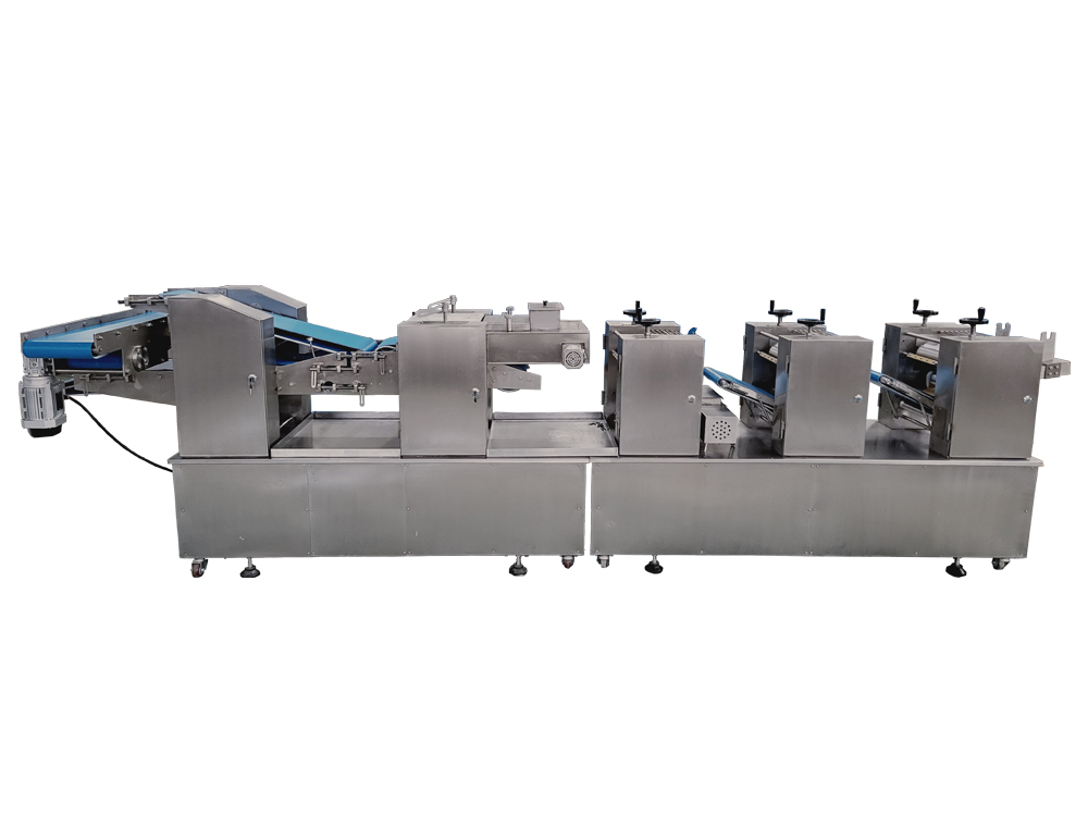 制皮機為臥式成型機,通過傳送機構(gòu)將各道軋輥線速度比合理分配,實現(xiàn)從投料到制皮成型自動化生產(chǎn)。適用于餃子皮、餛飩皮、燒麥皮、蒸餃皮、以及燙面類面皮成型。