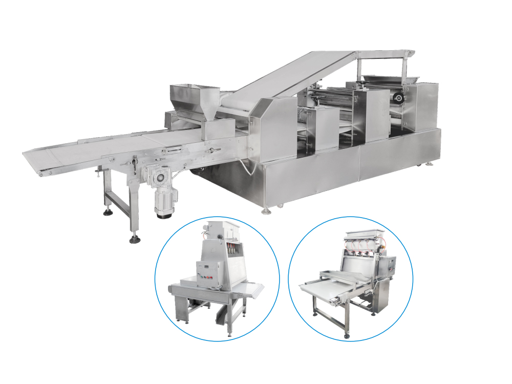 型號  型號500/600/700型  生產流程  拌漿機將糖漿加熱攪拌均勻→和面→面團擠出輸送→面餅成型→一次烘烤→噴糖→二次烘烤→冷卻  特色  1、成型機為變頻調速,自動化程度高,更換模具可生產多規(guī)格產品。  2、電烤爐通過加熱管加熱,并進行了合理的爐溫分區(qū),節(jié)能環(huán)保的同時還具有升溫快,降溫少,補溫快等特點?! ?、整套設備自動化程度高、操作簡單方便,可生產出多品種、多規(guī)格的產品。減輕勞動力,節(jié)省人工成本出品穩(wěn)定,輕松實現量產化。  4、機器安全、防護、可靠、穩(wěn)定性高。電氣安全符合國家標準?! ?、可以根據客戶場地及工藝要求進行定制?! ‰娍緺t技術參數